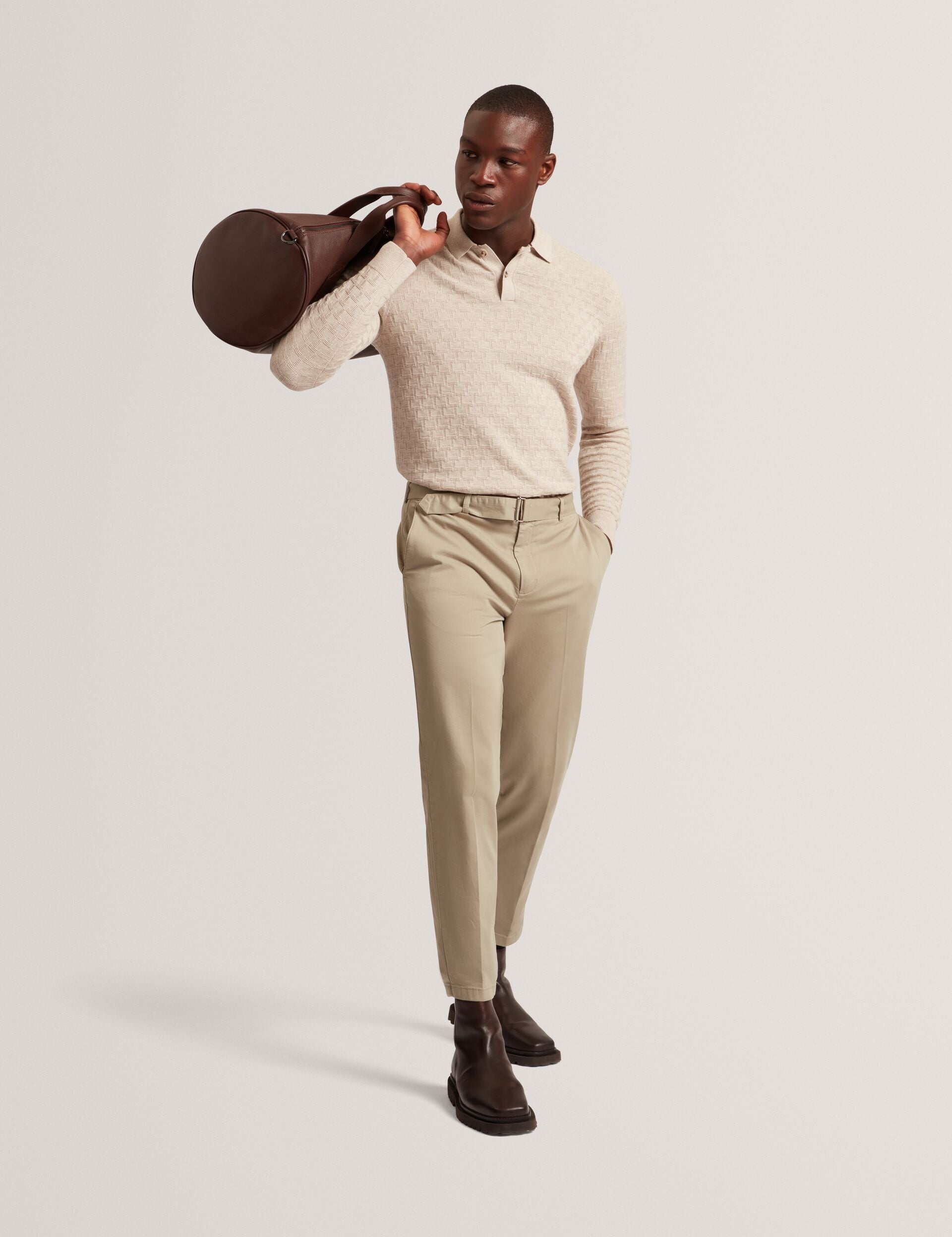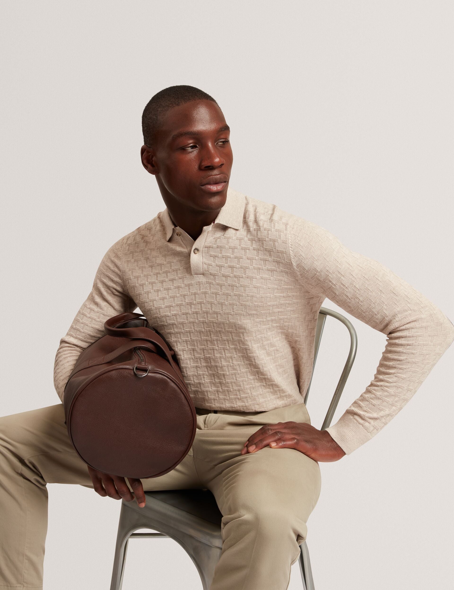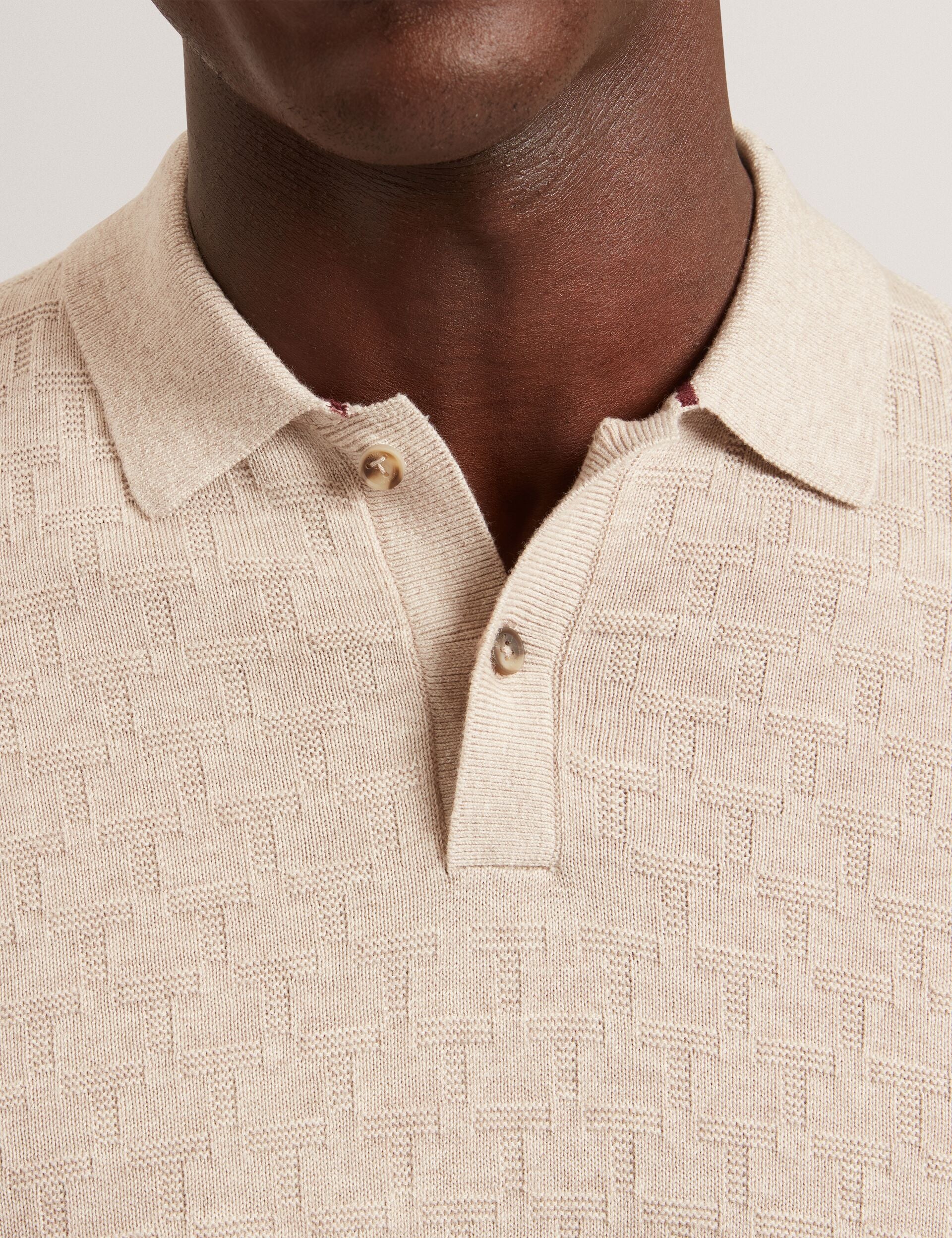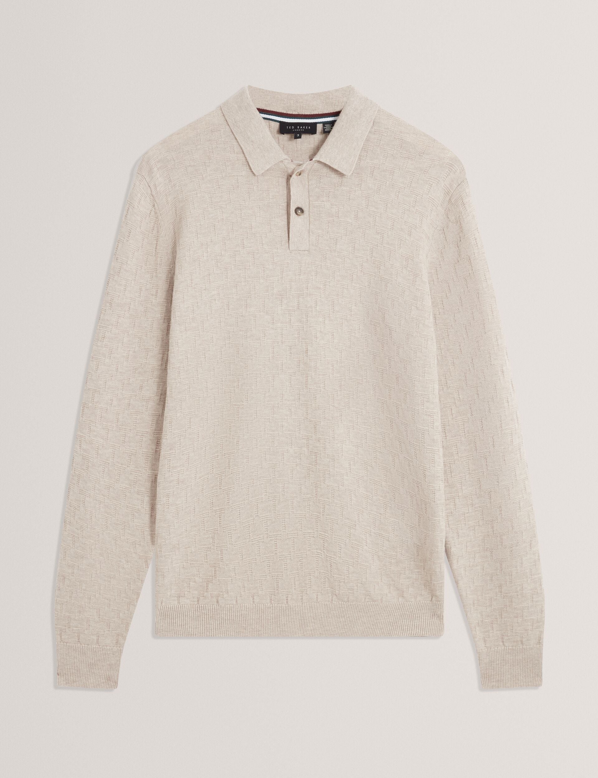 Ted Baker Men’s Gaten – Long Sleeve T Stitch Polo | Natural