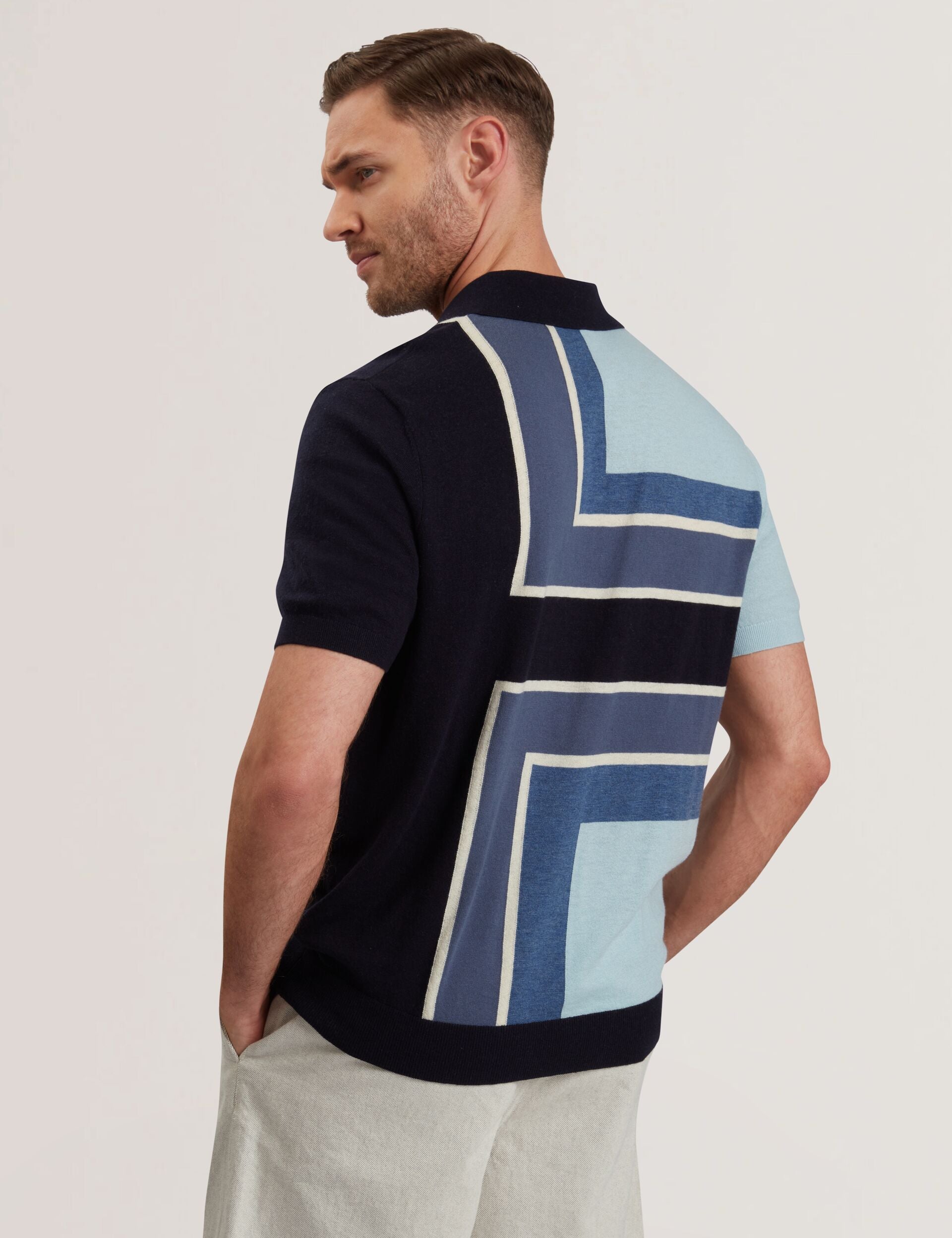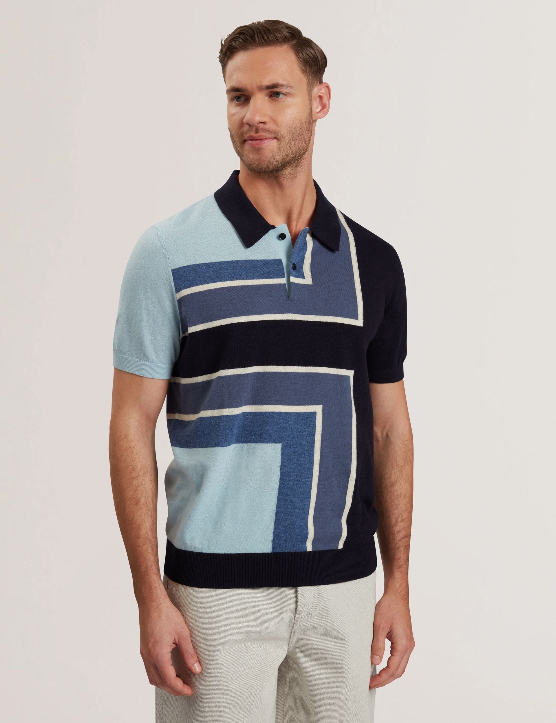 Ted Baker Men’s Ralfe – Colour Block Merino Wool Polo Shirt | Navy