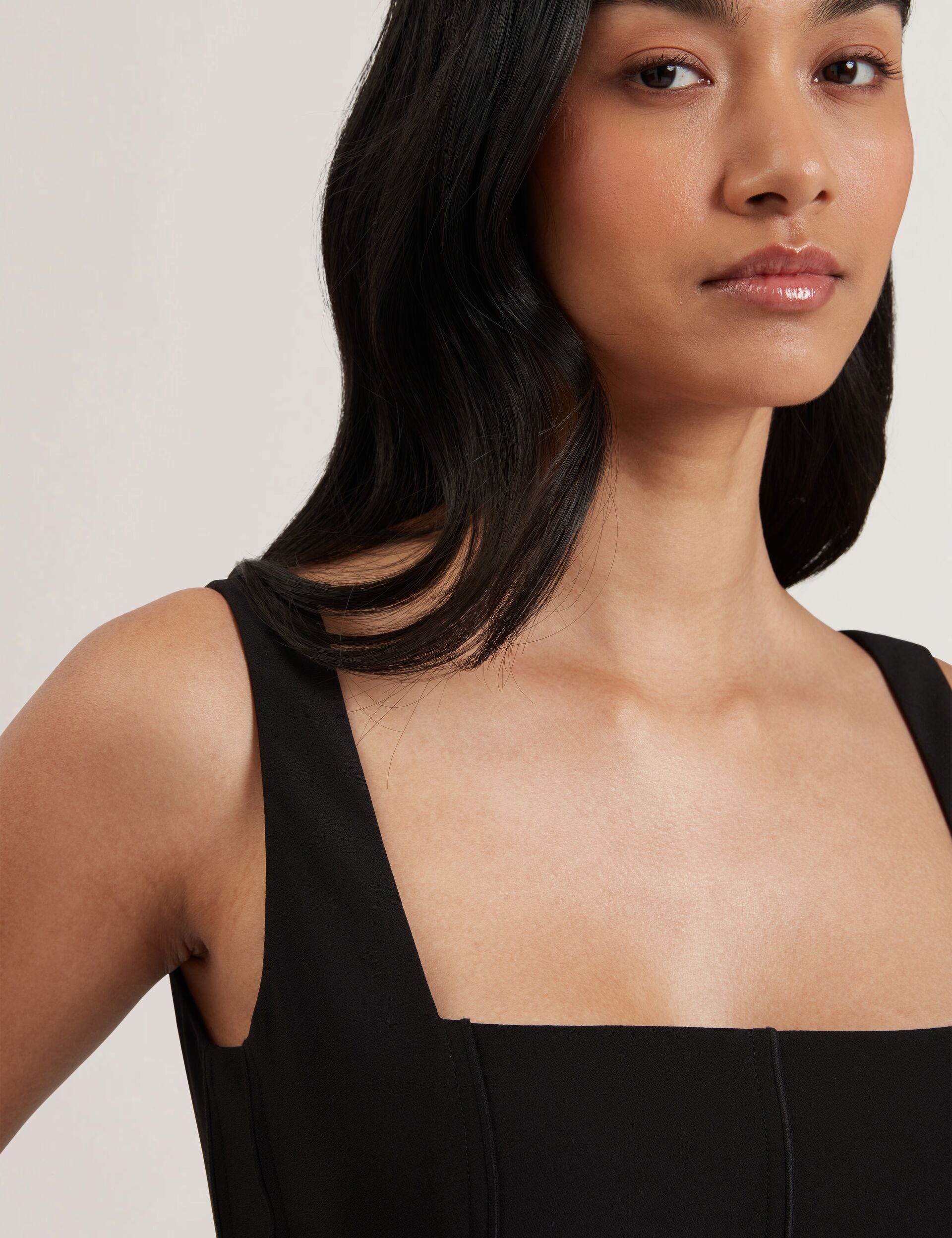 - Panelled bodice with raised seams