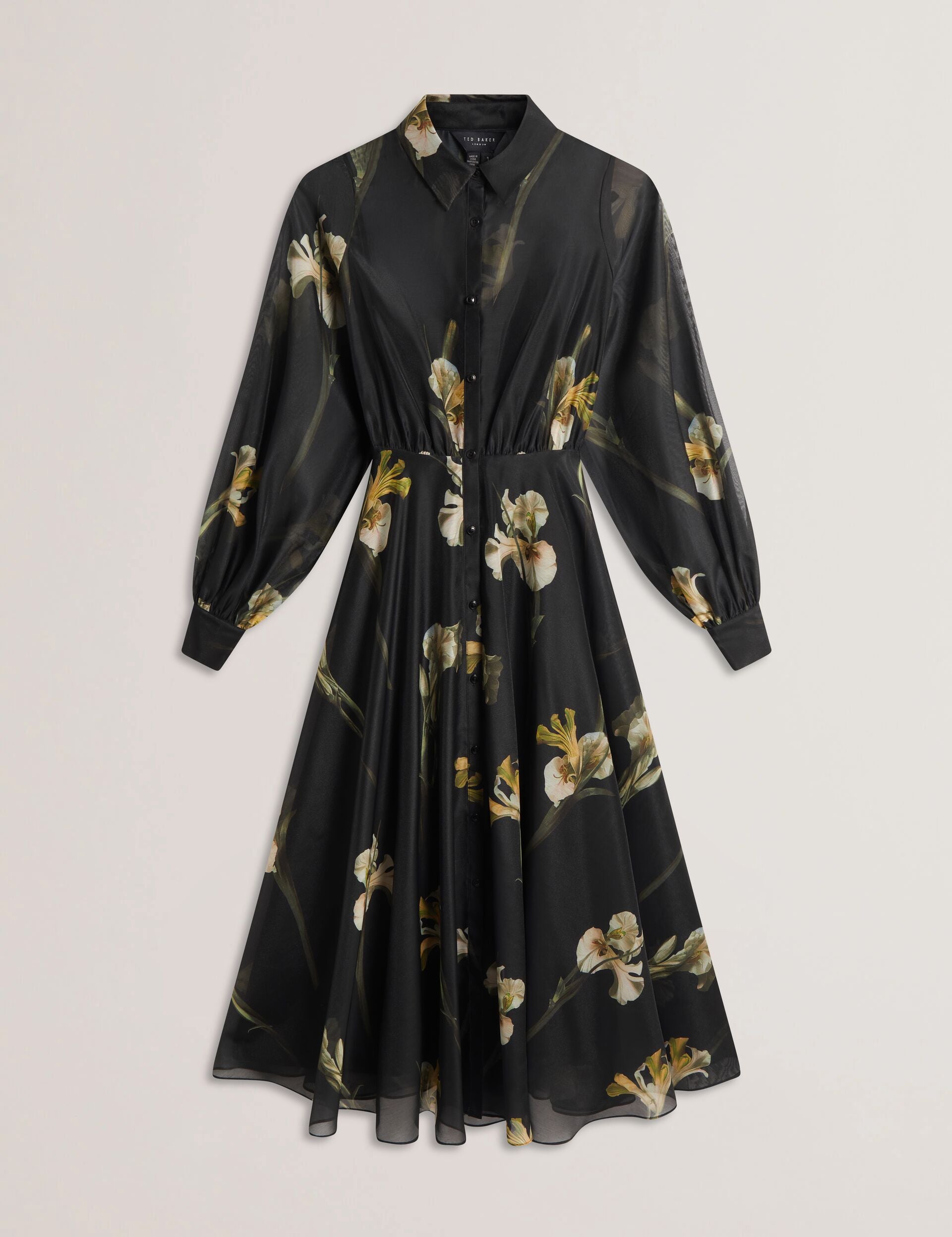 - Long balloon sleeves with button cuff