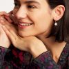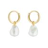 A simple pair of huggie hoops gets the elegant treatment with PERIAA, featuring a faux baroque pearl pendant for that classic touch. Finished with gold-tone plating and subtle engraved branding, these earrings are made with a hinge closure that’s secure and easy to use.