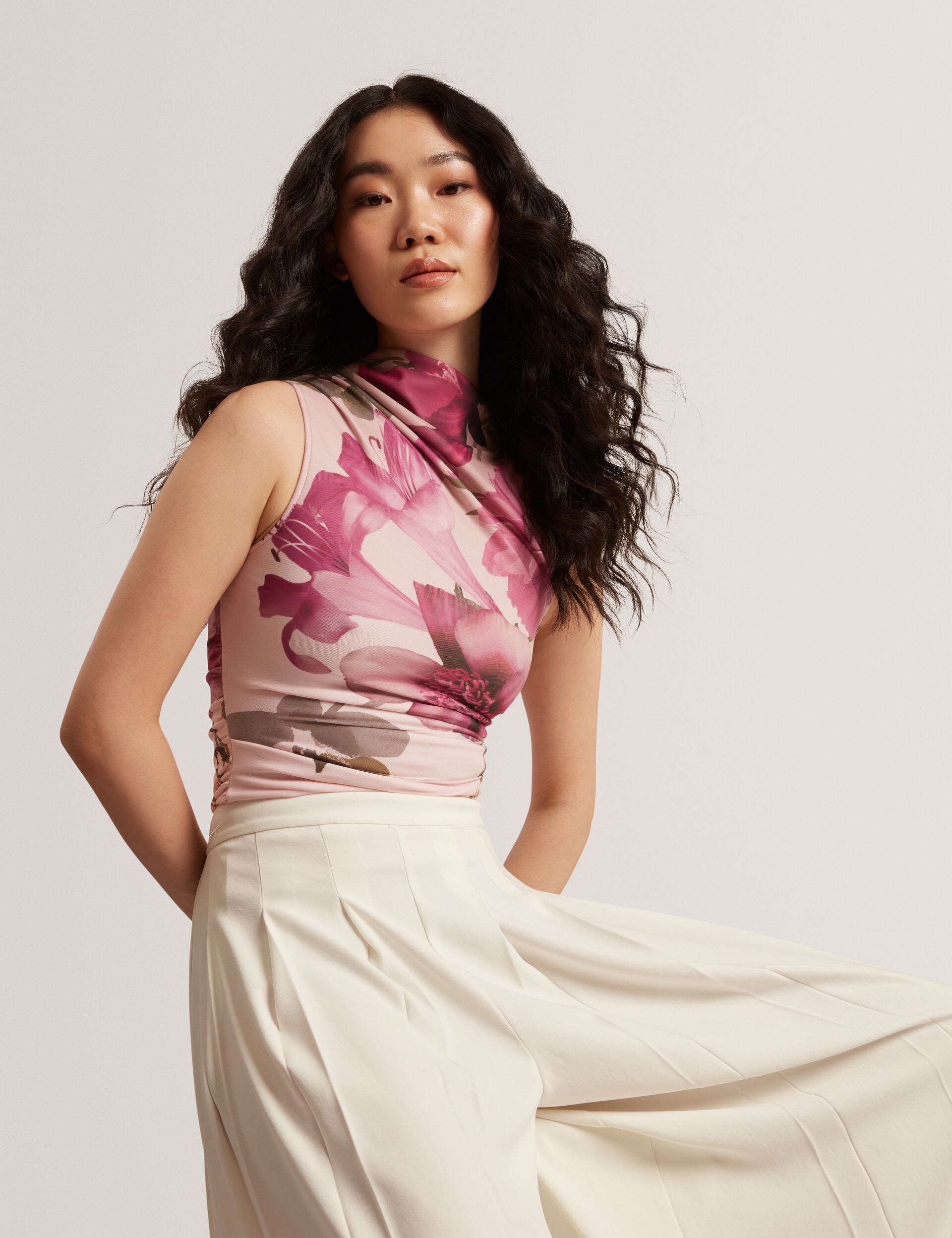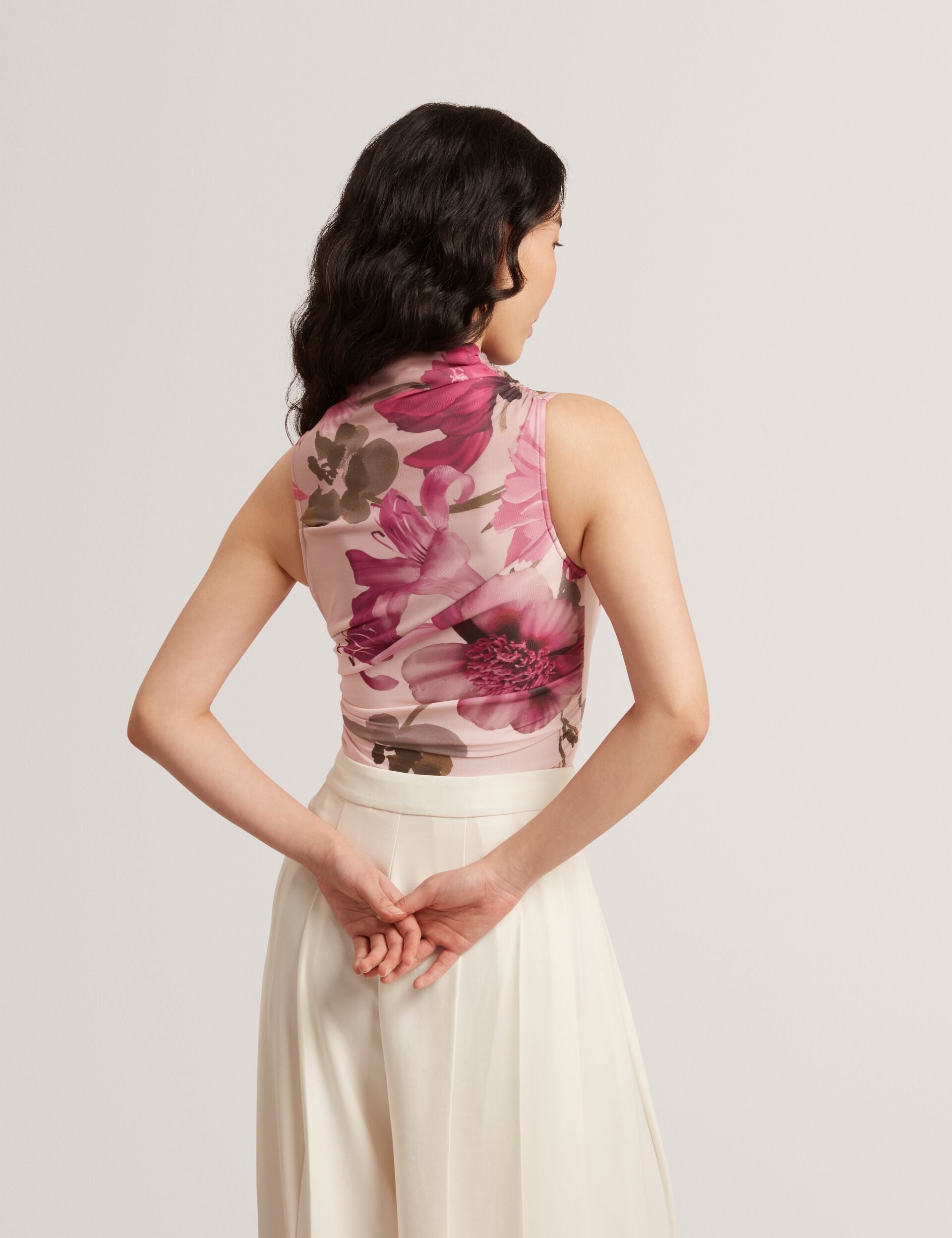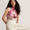 Bring sophistication and femininity together with the Ted Baker High Neck Mesh Top, featuring a delicate floral design and mesh fabric for a chic, modern look.